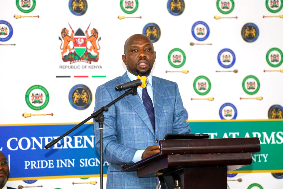 Interior Cabinet Secretary Kipchumba Murkomen addresses Serjeant-at-Arms officers during the 3rd National Serjeant-at-Arms Conference in Machakos County. PHOTO/Parliament of Kenya.